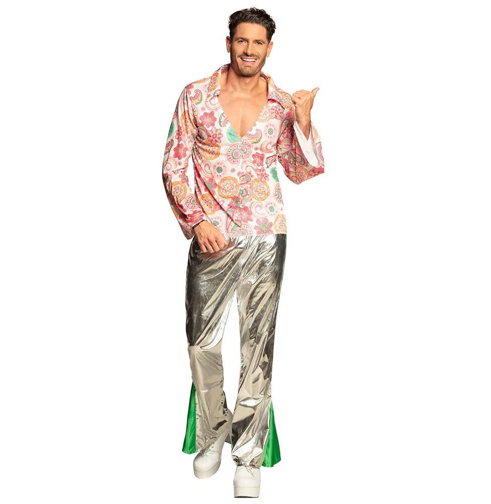 Strój Disco Man to świetne przebranie dla każdego Pana na imprezę w stylu disco czy lata 70-te. Srebrne szeleszczące spodnie nadają oryginalny wygląd i przyciągają wzrok.