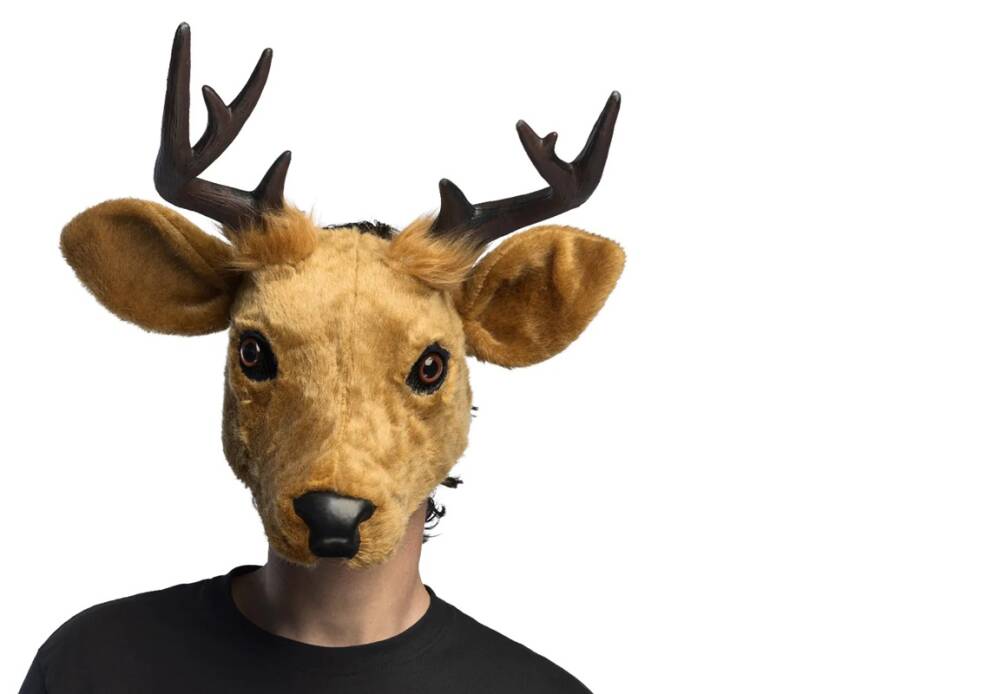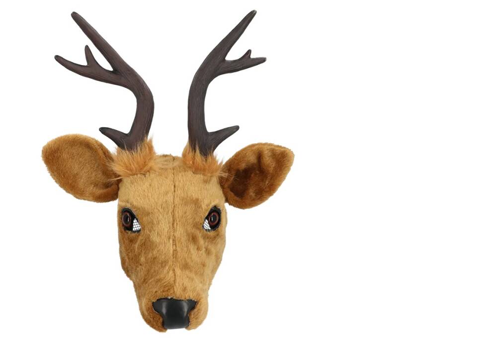 Ta solidna, realistyczna maska renifera jest wykończona miękkim pluszem.