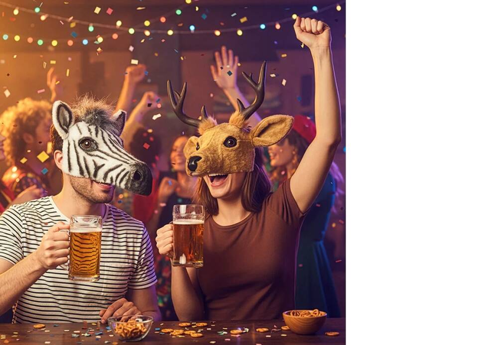 Puszyste futro i duże poroże tworzą zabawny i imponujący efekt. Idealna na imprezę tematyczną,