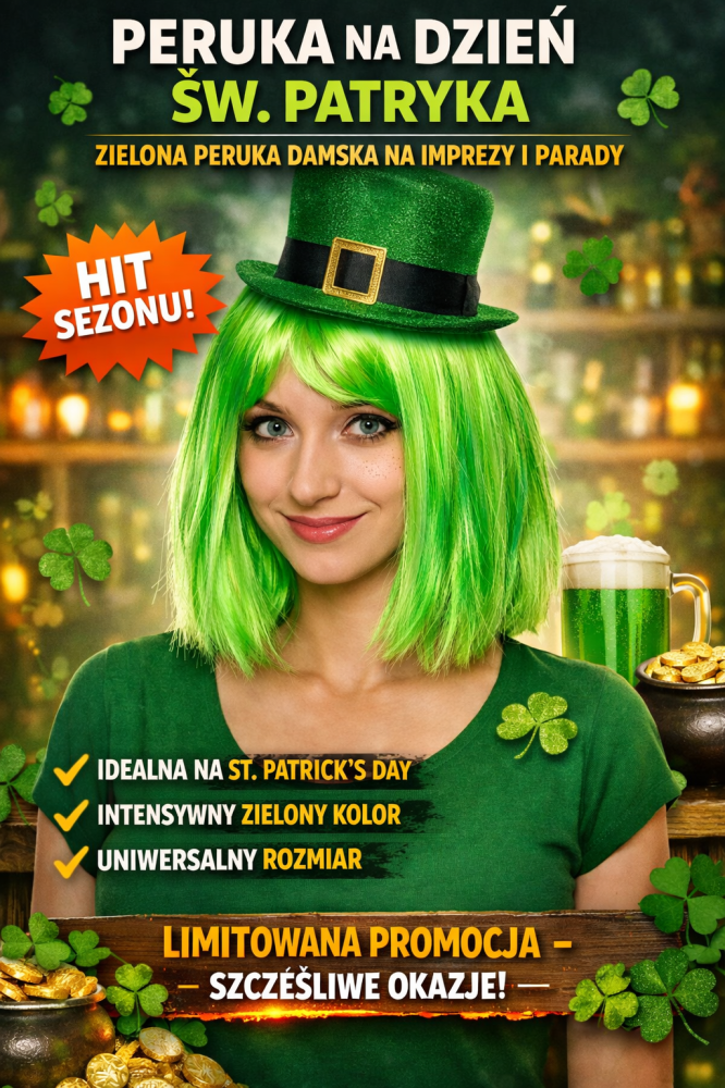 Ożyw swoją stylizację z naszą efektowną Peruką Krótką w intensywnym zielonym kolorze! To idealny wybór dla każdego, kto chce wyróżnić się na imprezie, balu przebierańców, sesji zdjęciowej czy podczas tematycznych eventów.