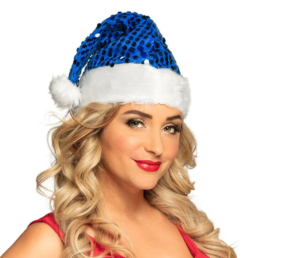 CZAPKA MIKOŁAJA Z CENINAMI GRANATOWA SANTA CLAUS ŚWIĘTA