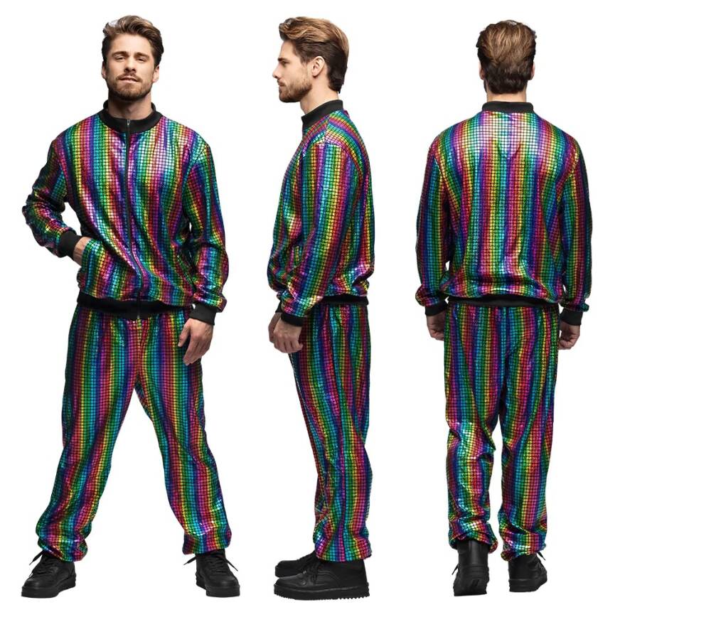 KOLOROWY DRES DISCO MEN LATA 80-TE