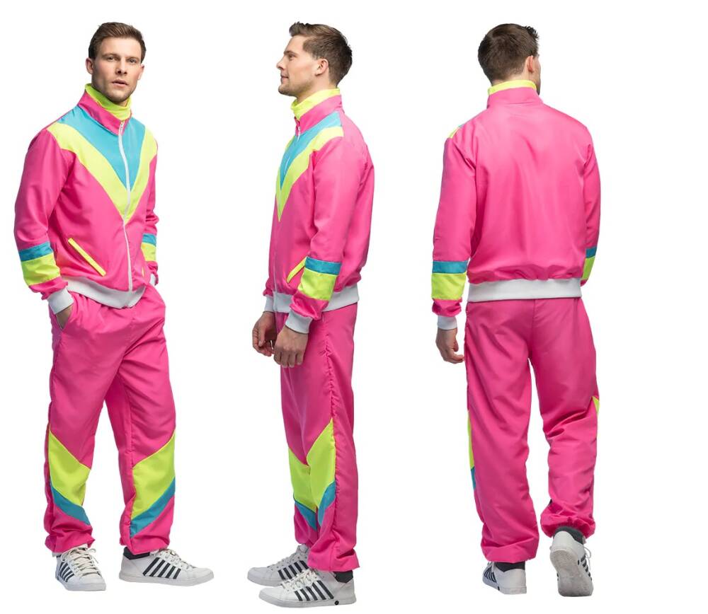 Różowy, kiczowaty, oldschoolowy męski dres - sprawdzi się na wszelkie imprezy przebierane, rave party, karnawały i zabawy.