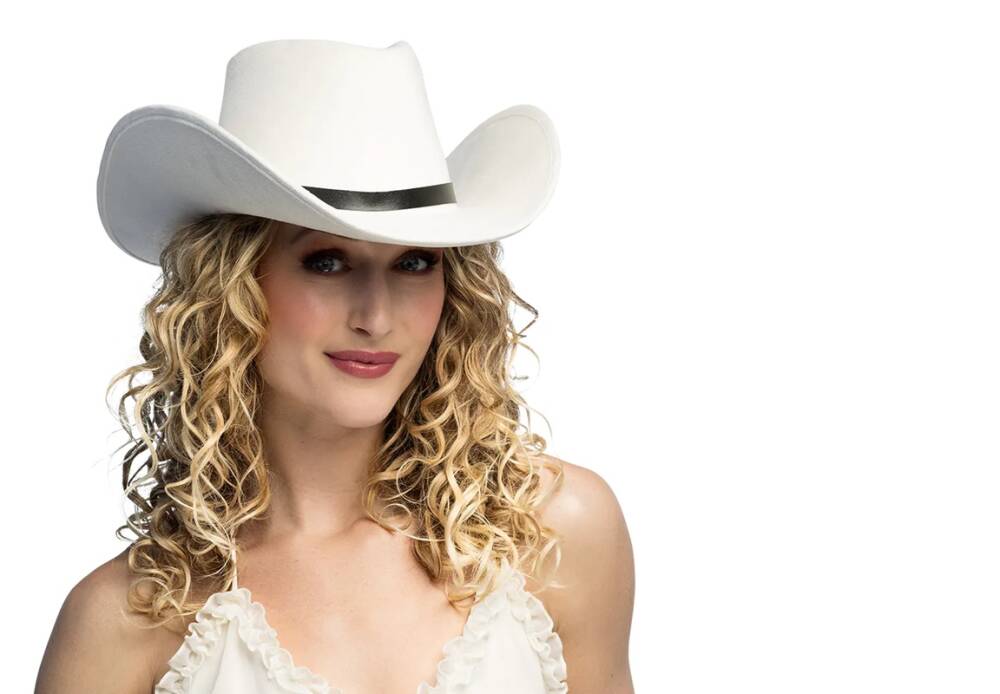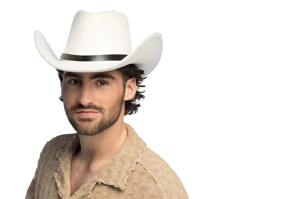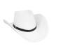 Stań w centrum uwagi w tym efektownym białym kapeluszu kowbojskim, wykończonym eleganckim czarnym paskiem.