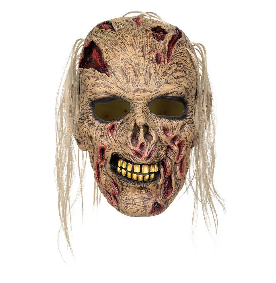 Dzięki tej przerażającej masce zombie każdy jest gotowy, aby noc była niebezpieczna podczas Halloween. Z realistycznymi ranami, gnijącą skórą i przerażającymi włosami, ta lateksu maska emanuje czystą przerażeniem i zmienia wszystkich w nieudacznika, który właśnie wyczołgał się z grobu. Idealne akcesorium na imprezy Halloween, wycieczki grożące lub nawiedzone domy.