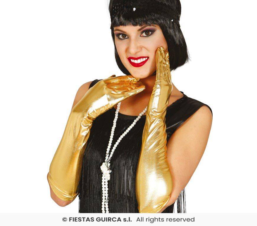 Szykowne rękawiczki o długości 44cm. Wspaniale dopełnią na przykład stroje księżniczki, wróżki, divy z lat 20-tych. Dobry dodatek na bale, imprezy okolicznościowe, wieczory panieńskie i wiele innych. Kolor złoty.
