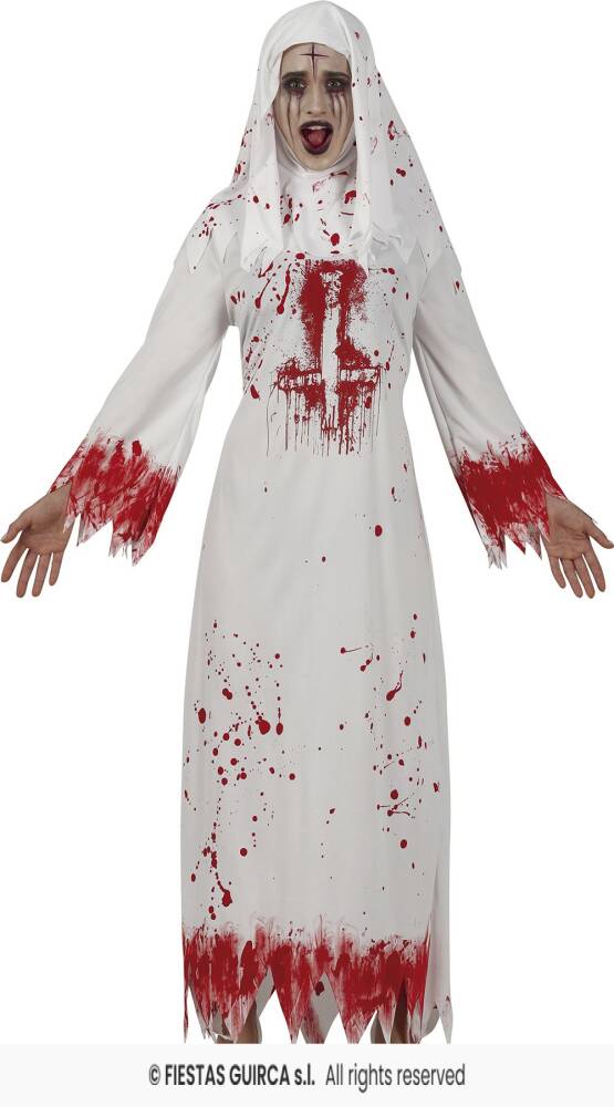 Z pozoru niewinnie wyglądająca osoba, z odpowiednio dobranym makijażem, może wyglądać bardzo przerażająco, nawet zakonnica. Przebranie krwawej zakonnicy z horroru, to nietuzinkowy pomysł na zabawę karnawałową, czy Halloween. Jeśli lubicie siać postrach, w tym kostiumie uda Wam się to bez trudu. W zestawie znajduje się poszarpana, zakrwawiona tunika oraz nakrycie głowy.
