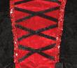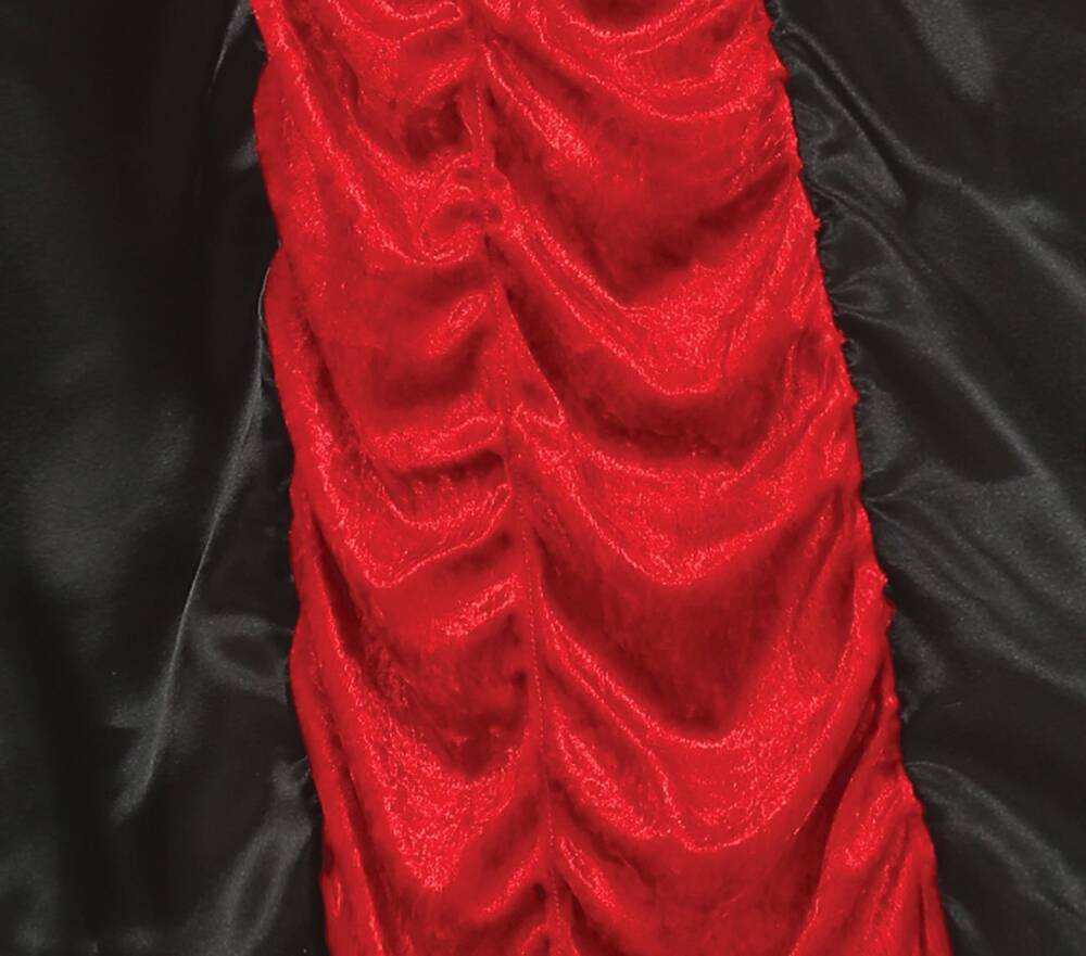 długa suknia w kolorze czarno-czerwonym ze stojącym kołnierzem