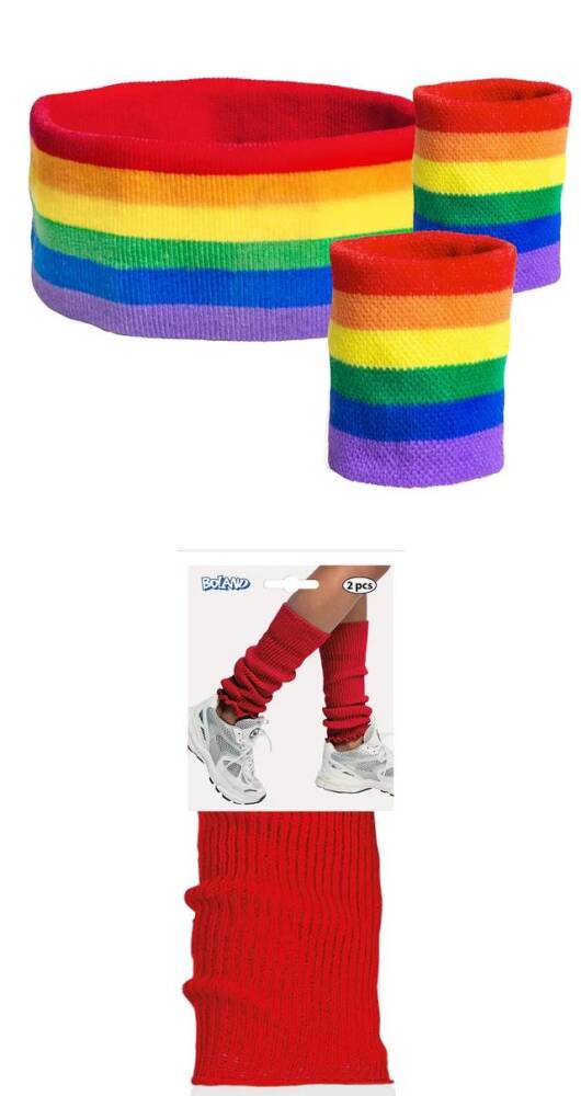 • Kolorowa opaska na głowę – obowiązkowy gadżet każdego sportowca lat 80., który dbał o swój styl, nawet robiąc przysiady!