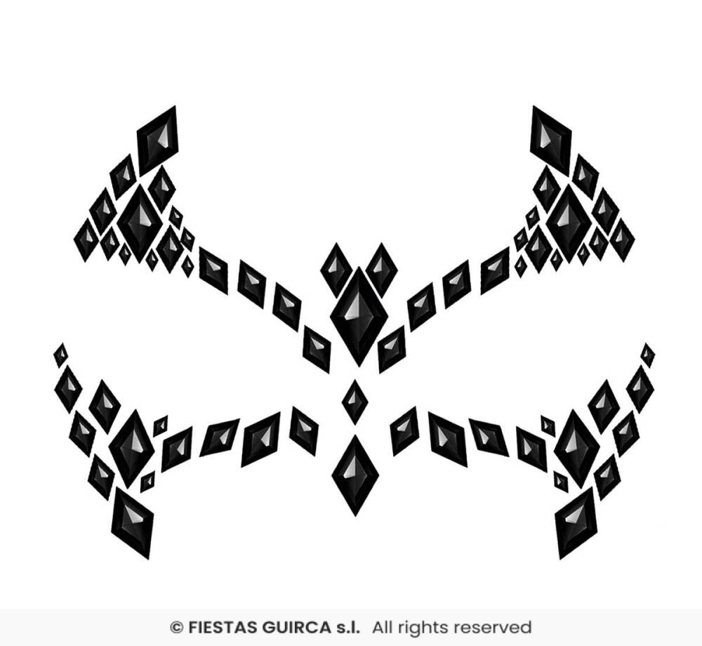 Kryształki w kształcie rombów i trójkątów w czarnym kolorze z połyskującym wykończeniem przyciągają wzrok i dodają tajemniczości każdemu makijażowi.