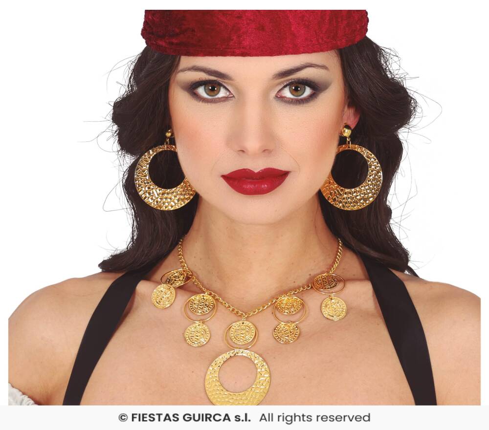 Zestaw Biżuterii Pirackiej Cyganki – Naszyjnik i Kolczyki Złote