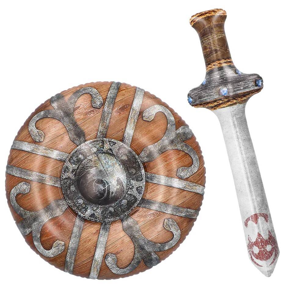 Organizujesz przyjęcie urodzinowe lub inną imprezę z motywem wikingów? A może wybierasz się na LARP, konwent bądź inne wydarzenie z udziałem miłośników nordyckich wojowników? Z pewnością nie możesz zapomnieć o wspaniałych dekoracjach i odpowiednim stroju. Dmuchany miecz i tarcza wikinga na pewno doskonale sprawdzą się w tej roli! Długość miecza wraz z rękojeścią wynosi 58 cm. Tarcza ma natomiast 45 cm średnicy.