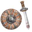 ✅ W skład zestawu wchodzą dwa elementy (tarcza i miecz), które swoim wyglądem imitują prawdziwe drewno oraz metal.