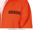 Pomarańczowy kombinezon z czarnym numerem więźnia jako detalem