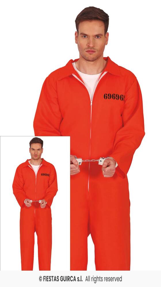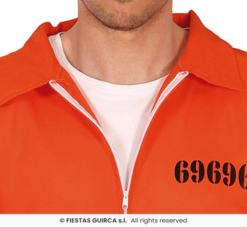 Pomarańczowy kombinezon z czarnym numerem więźnia jako detalem