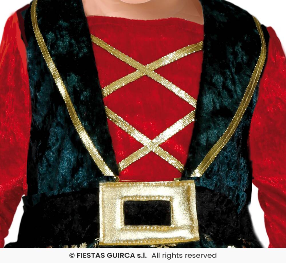 W pasie znajduje się imitacja czarnego paska z klamrą, dodający całości klasycznego wyglądu. Do kompletu dołączona jest zielona czapka z uroczym pomponem, która dopełnia cały strój. Kostium jest lekki, wygodny i zapewnia pełną swobodę ruchów, idealny dla maluchów na świąteczne sesje zdjęciowe, jasełka czy rodzinne przyjęcia. Radosny i pełen świątecznego uroku!